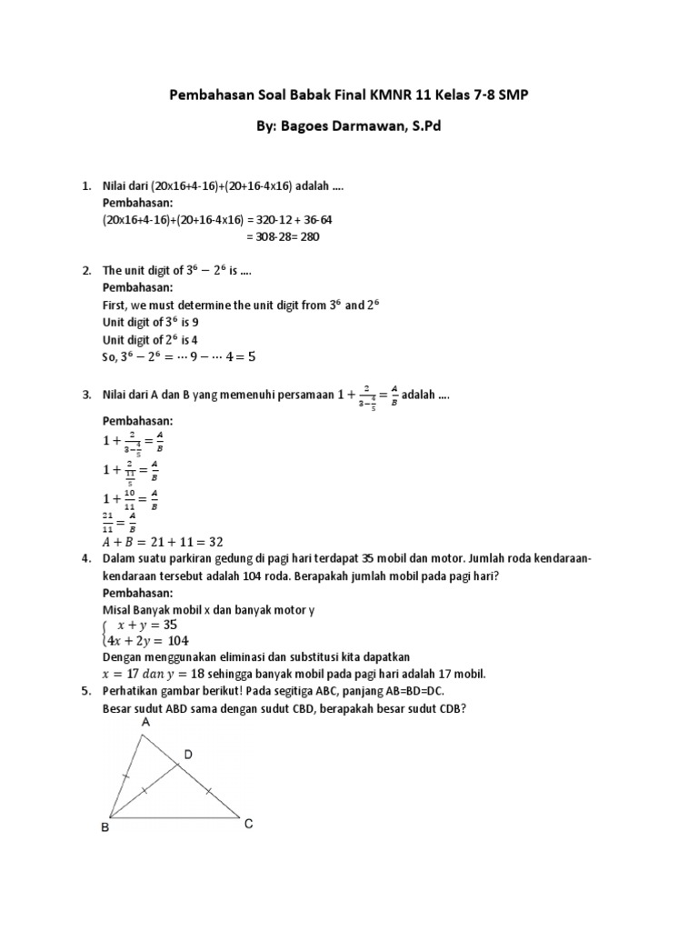 Pembahasan Soal Babak Final Kmnr 11 Kelas 7 8 Autosaved