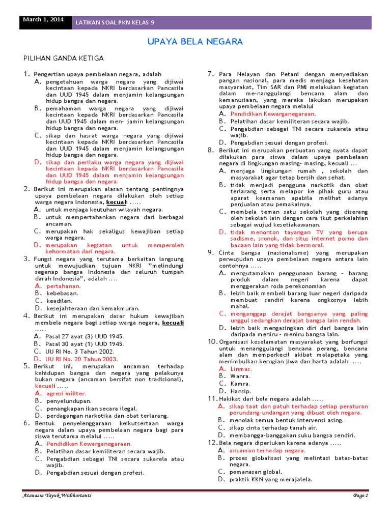 Soal Latihan Jawaban Upaya Bela Negara Part 3
