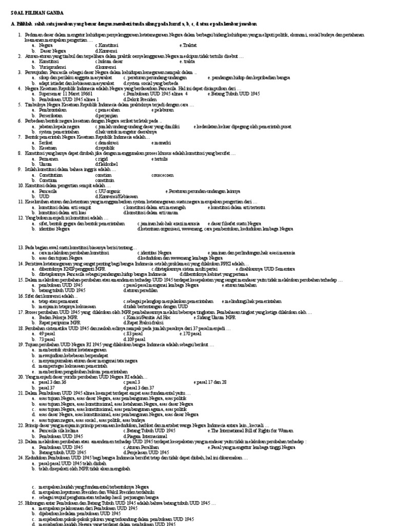 Latihan Soal Pilihan Ganda Tentang Uud 1945 Docx