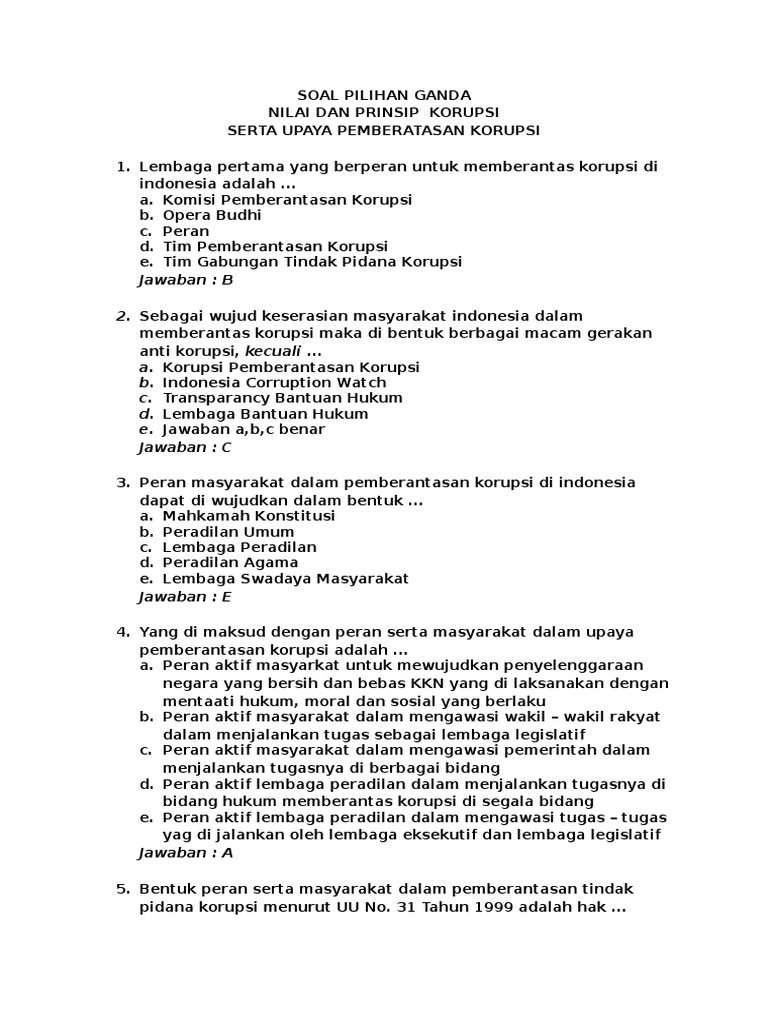 Contoh Soal Pkn Kelas X Semester 2 Pilihan Ganda Dan Kunci Jawabannya