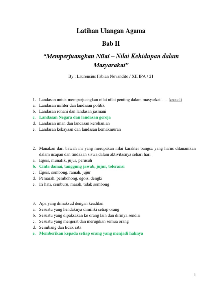 Soal Latihan Agama Katolik Kelas Xii Dan Pembahasan Nilai Hidup Dalam Masyarakat