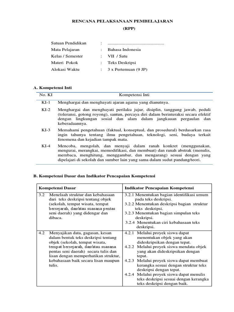 Rpp Kd 3 2 Dan Kd 4 2 Teks Deskripsi