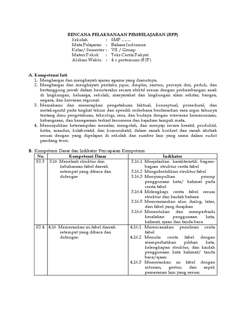 Download Rpp Daring Bahasa Indonesia Kelas 7 Tahun 2020 Infoguruku